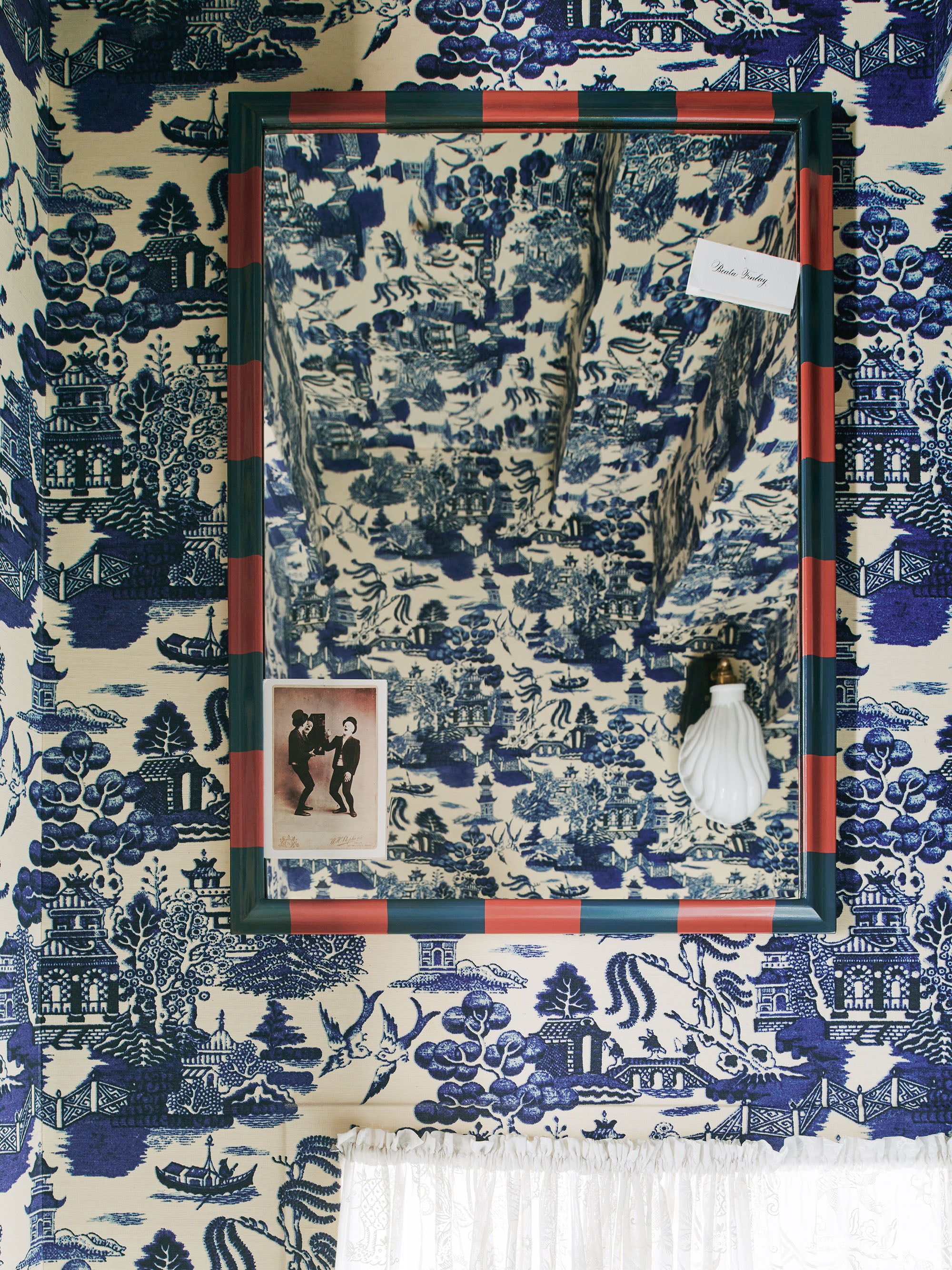 When Beata bought the house, the space under the front steps was cold, dark and damp. The only access was from the outside as an old coal storage. Nowadays it’s a sugar bowl of a guest loo, covered in our Willow Ink wallpaper.