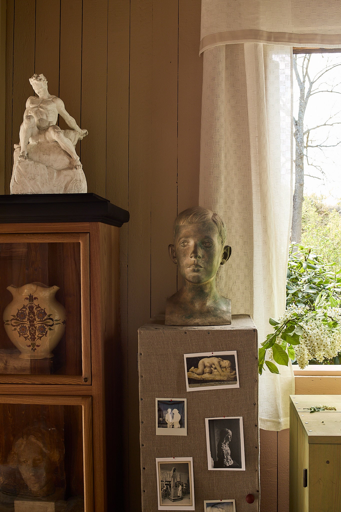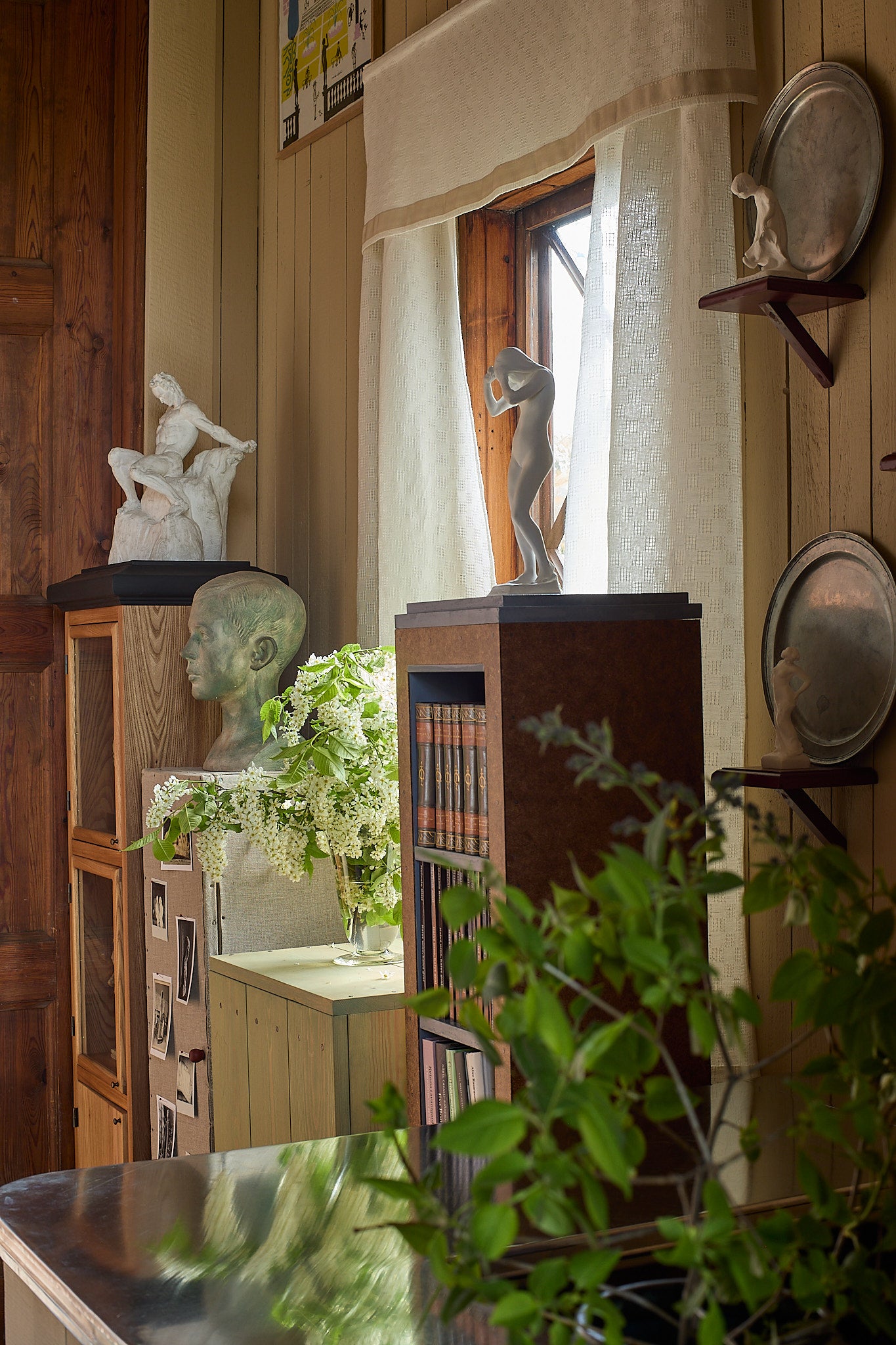 The Stora Ateljén (Large Studio) facing west benefits from golden sunsets during light filled Swedish summers, where the sun only sets for a few hours each night. The pedestals in this room inspired our plinths in the shop. August Strindberg, the father of Swedish modern literature, reigns on the highest one. Eldh returned to his friend and subject again and again, sometimes in gargantuan God like scale. To the left of him is arguably Eldh's most famous piece 'Youth'; two young lovers hands clasped in an eternal clinch.