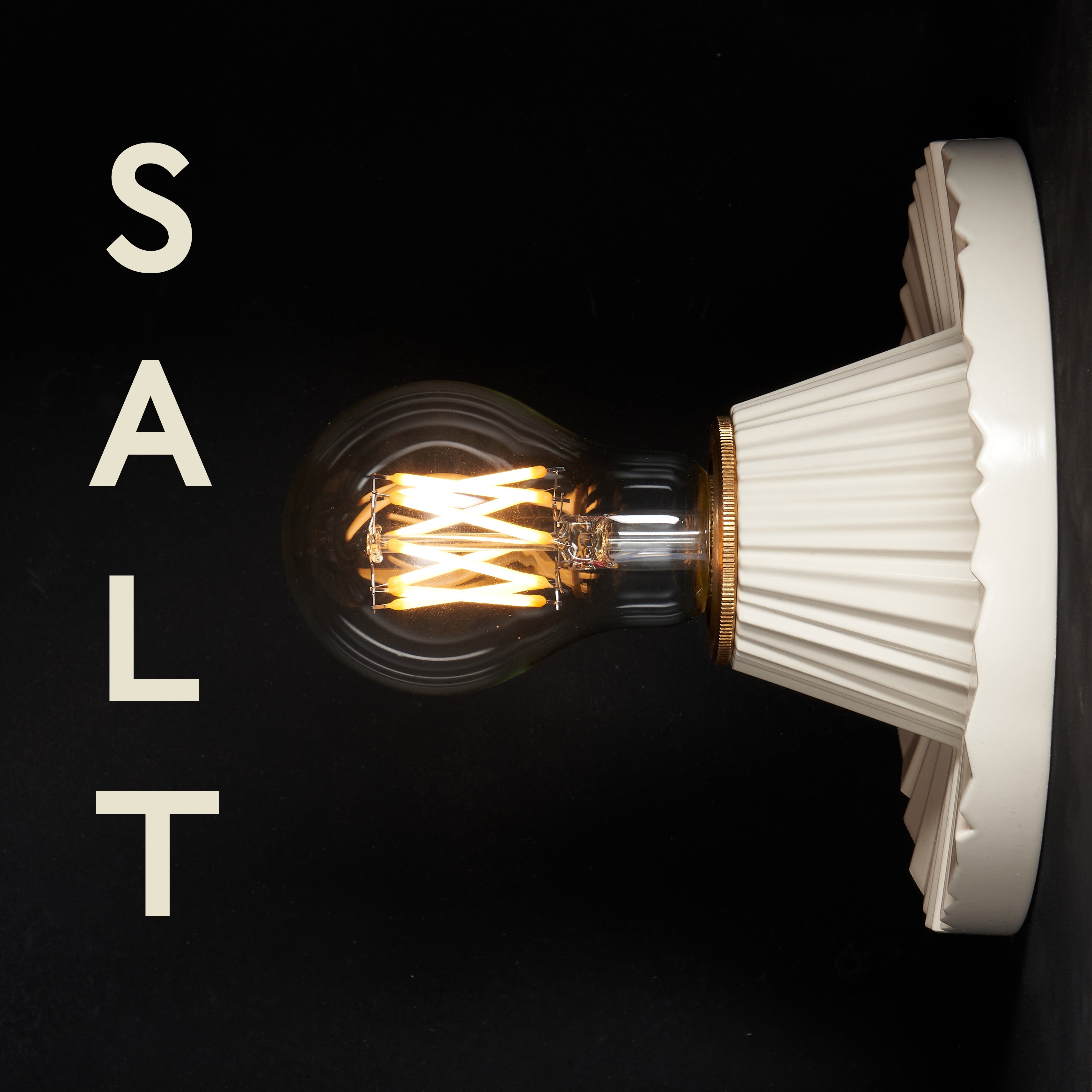 A light designed to fit almost any space. The Crinkle celebrates the Edison bulb and works perfectly as an alternative to unsightly spotlights. Its uneven, ridged surface beautifully reflects and catches light in different ways as you walk around it. The Crinkles work well on their own, but also sit nicely around a bigger central pendant towards each corner of the ceiling. They look striking as a wall light with a silver capped bulb too. Each light is made entirely in the UK and cast in solid aluminium. Salt is understated and on a white ceiling can look like a blended yet subtly varied continuation of the surface. Salt also works well on a coloured or wallpapered wall or ceiling, providing a calming contrast that allow stronger colours around it to sing.