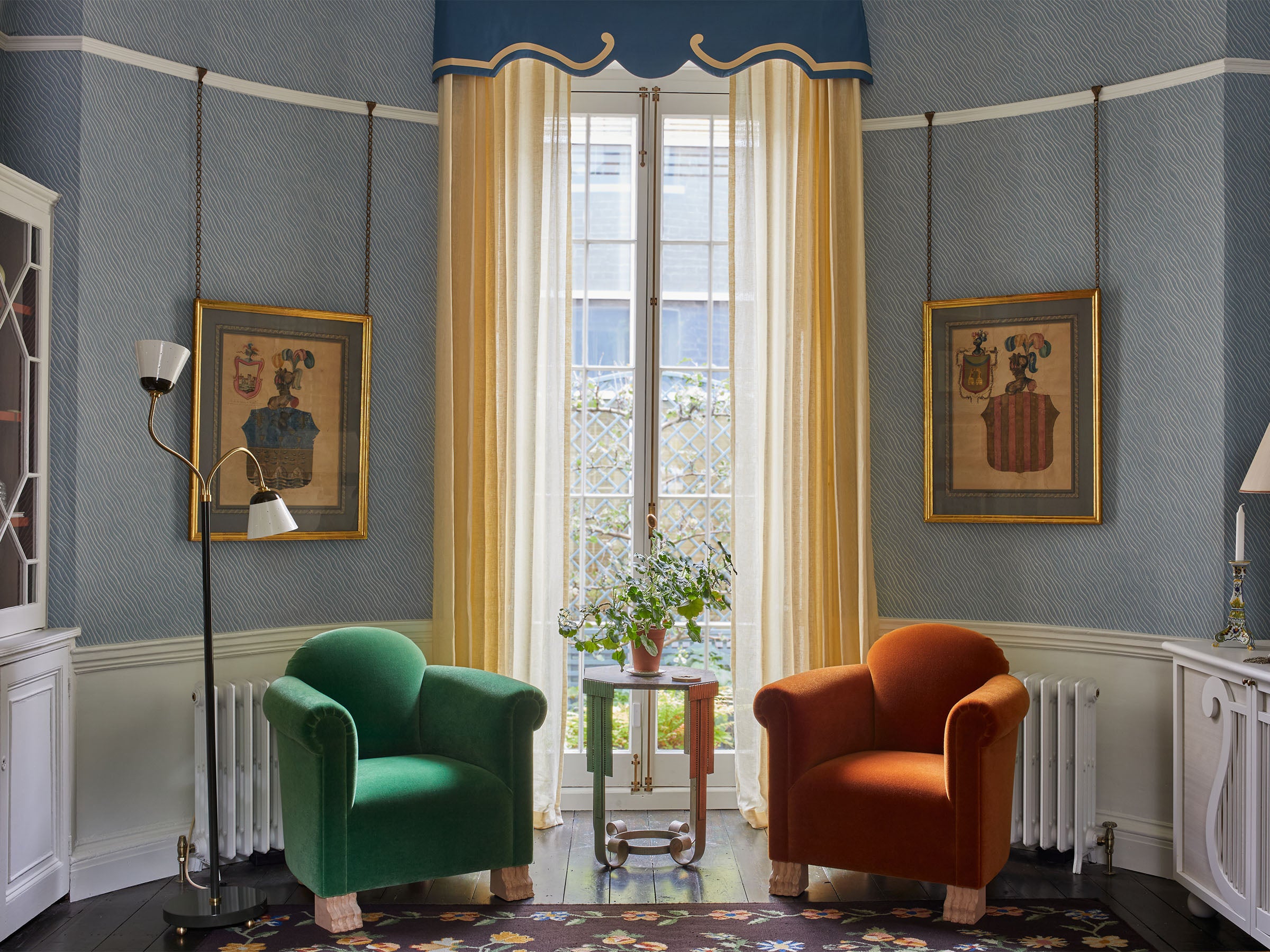 Eyelash Wallpaper was inspired by a wave-like pattern from an antique Japanese decorative paper. The design is made up of a calming sea of fine, hand-drawn eyelashes that gently wash across the repeat. It provides a subtle background of colour to a room with beautiful details revealed on a closer look. In each 10m roll we’ve concealed – hiding in plain sight – a single eye. Our Spring colourway, which took many revisions to fine-tune to the perfect shade, is an uplifting, balanced blue-grey and provides a serene backdrop on the wall. It’s a versatile design that adds depth to a room: shown here used in the library at 188.