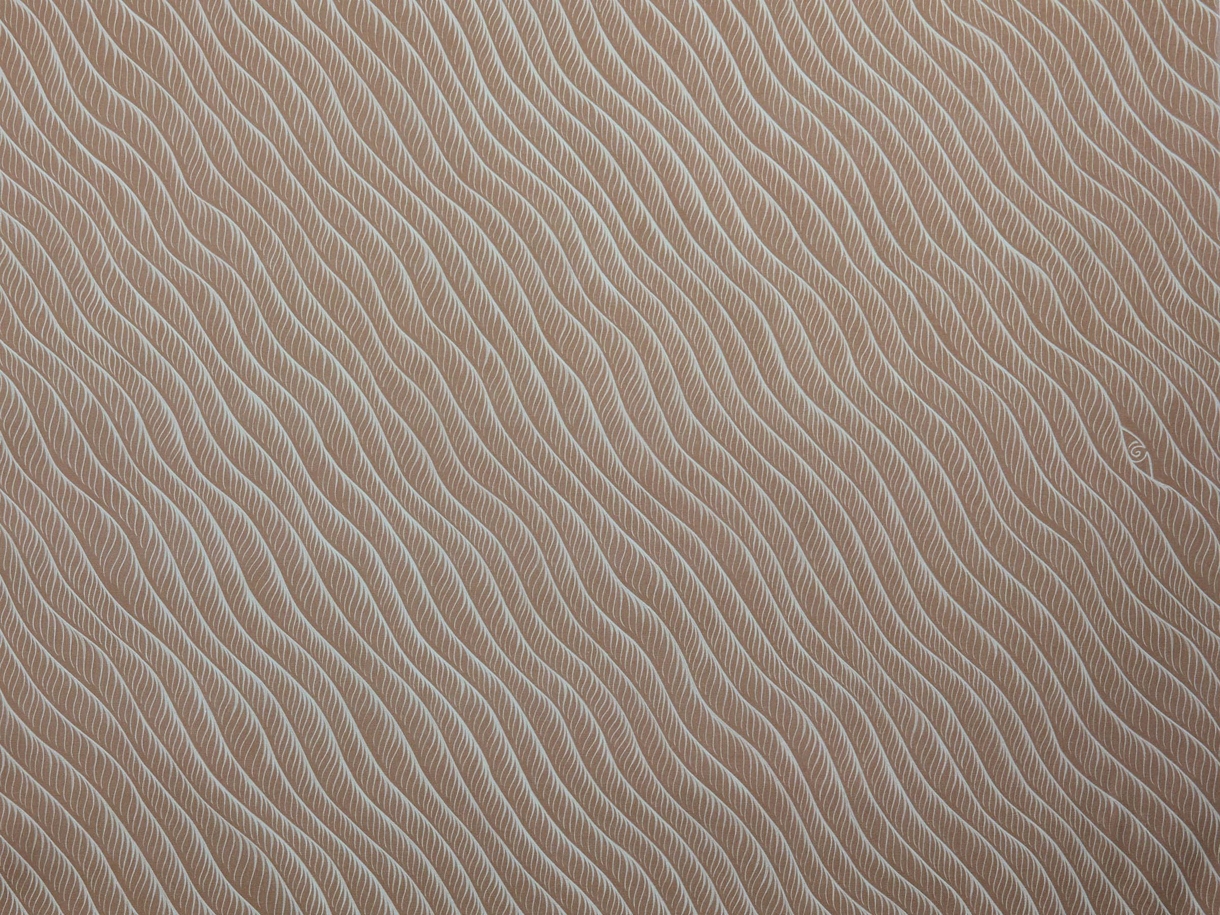 Eyelash fabric was inspired by a wave-like pattern from an antique Japanese decorative paper. The design is made up of a calming sea of fine, hand-drawn eyelashes that gently wash across the large repeat. We’ve also concealed – hiding in plain sight – a single eye in every 3 metres of the roll.