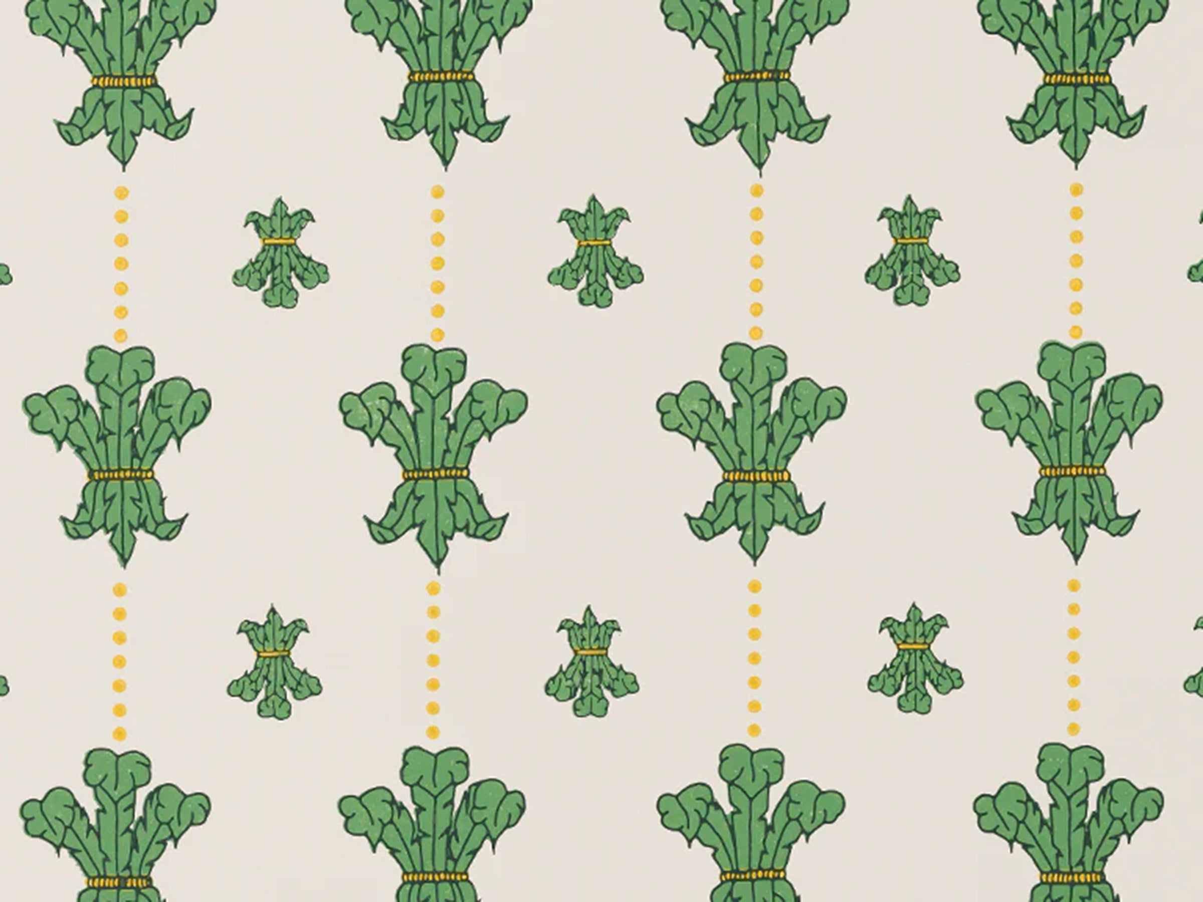 Florentine Flowers is inspired by Beata’s love of Florence, where many buildings are decorated with the Florentine Giglio. The floral motif has been a symbol of the city for centuries, inspired by the Iris Fiorentina that grow wild along the Arno river valley and hills around the city. Although the design may appear uniform at first glance, there are in fact three variations of the hand drawn motif with subtle variations that imbue the wallpaper with personality and warmth, revealing themselves to a keen and watchful eye. From some angles the Florentine Flowers appear to mimic the plume like crown of our Dodo Egg Light, but from others, petals akin to the lily of the French 'Fleur De Lis' - rumoured to have sprung from the tears shed by Eve as she left Eden.
