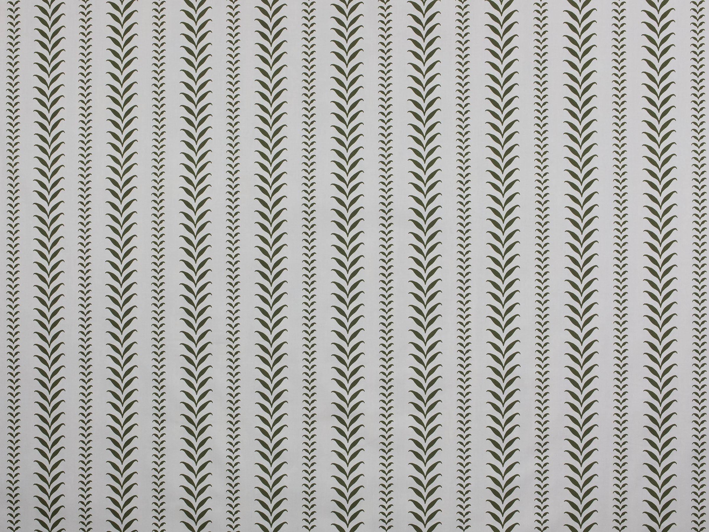 Our house Fancy Lining is a simple, leafy stripe adding charm where plain fabric is usually expected. It was created primarily as a fancy lining for curtains and blinds and it works beautifully as upholstery lining, for example covering the inside of a storage bench. It can also be used for light upholstery.