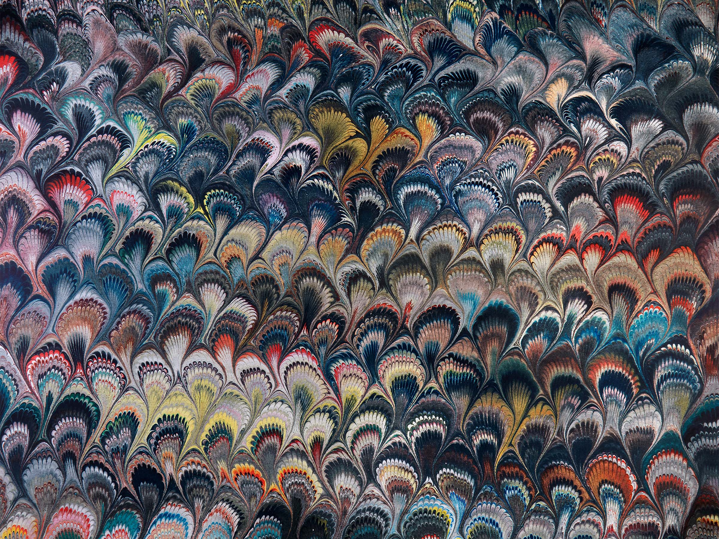 Our Marbleized Two-by-Two cushion cover is made with our Marbleized Velvet, created using the age-old technique of ink marbling. Each cushion cover has a wool felt patch decorated with a chain stitch doodle.