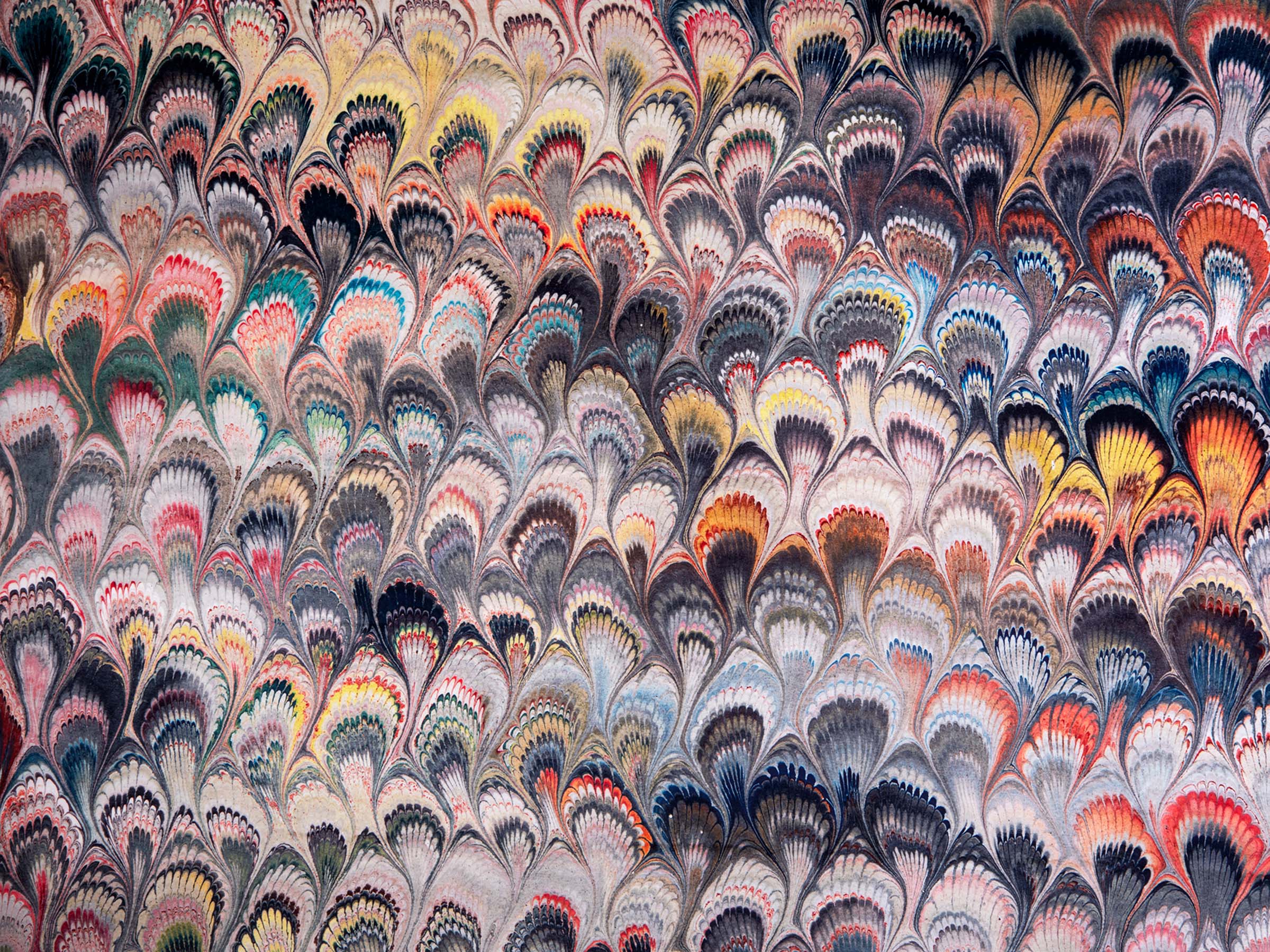 The design is a new take on the marvellous marbleized paper which became popular in Europe during 17th Century, when it was used to line books and the inside of furniture. Creating the patterns requires great skill and also a small measure of luck, as it is impossible to completely control the outcome, which makes the technique all the more poetic.