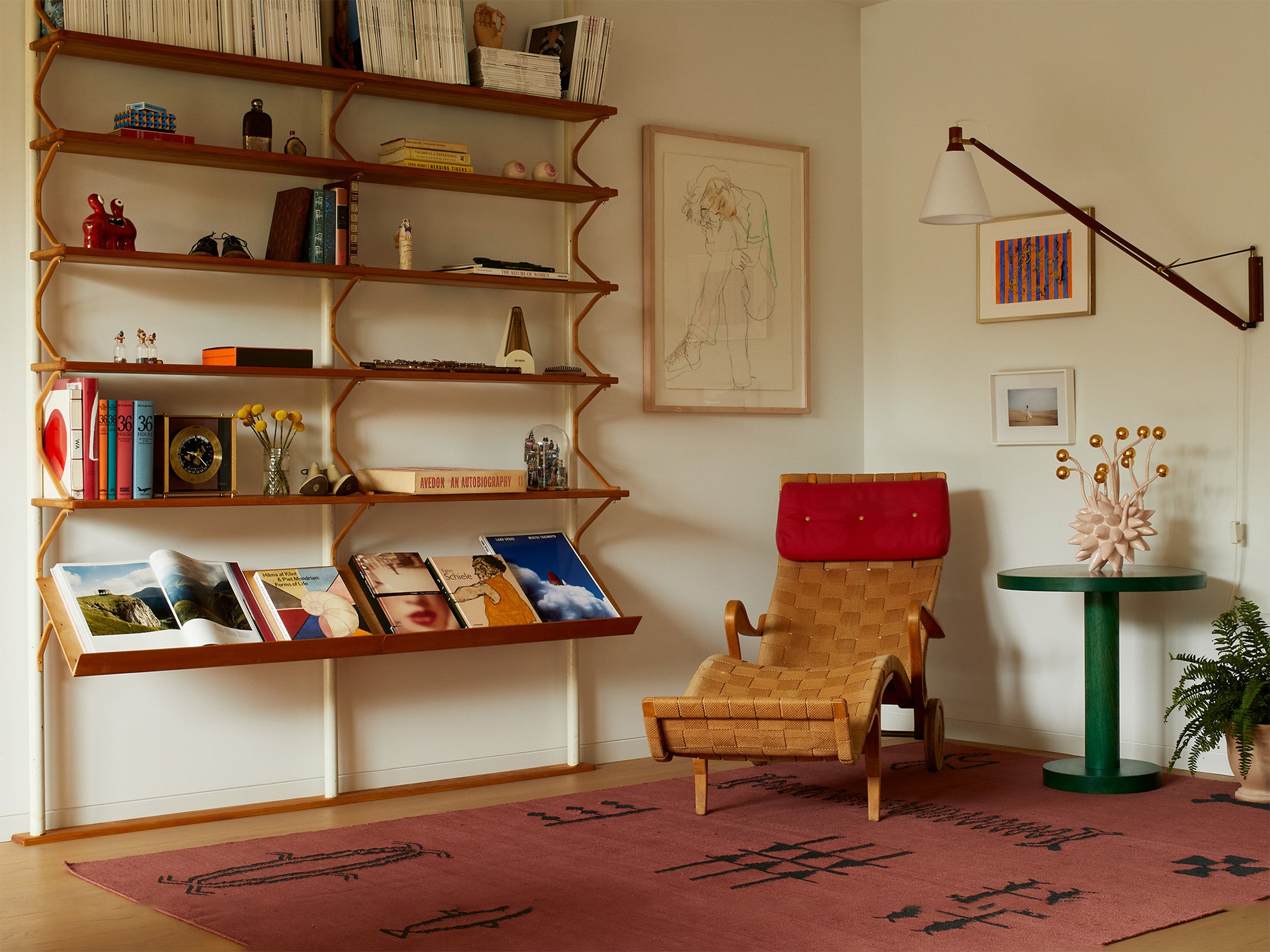 A flat-weave rug in jute, with a rose background. The rose colour gives off a particularly flattering light, without being dominating. The inky blue motifs are symbols of nature, used in tattoos since centuries back. The rug is made completely by hand. The family in India who weaves the rug has had their small workshop, which employs good working conditions and fair wages, for close to 100 years. Each rug takes around 5 weeks for one person to finish. Once finished the rug is torched to get rid of any access fibre and also to seal it. The jute is sourced locally and deep dyed using only natural pigment.