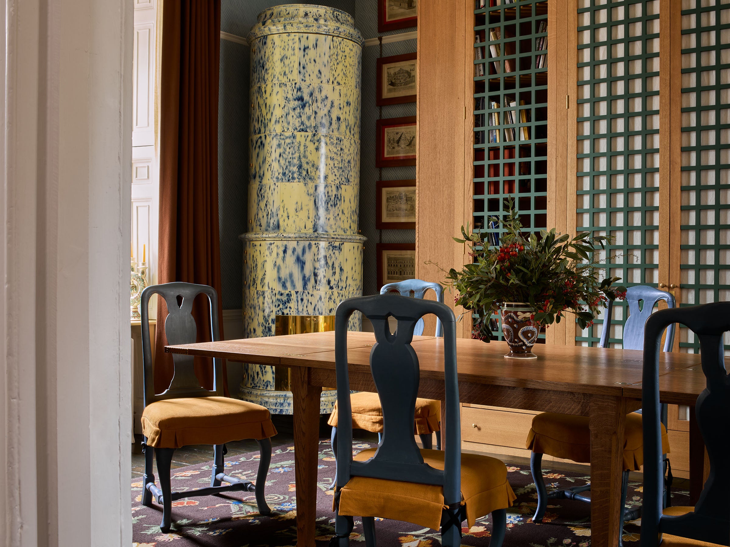 Terry can be left closed and generously seat four or six. He also works splendidly as a library or hall table filled with books or with a vase of flowers atop. Open him up using the practical pull out Button supports and you have a party for eight or ten. In our Library at 188 we have two Terry Twofold next to one another which seats twenty on occasion.