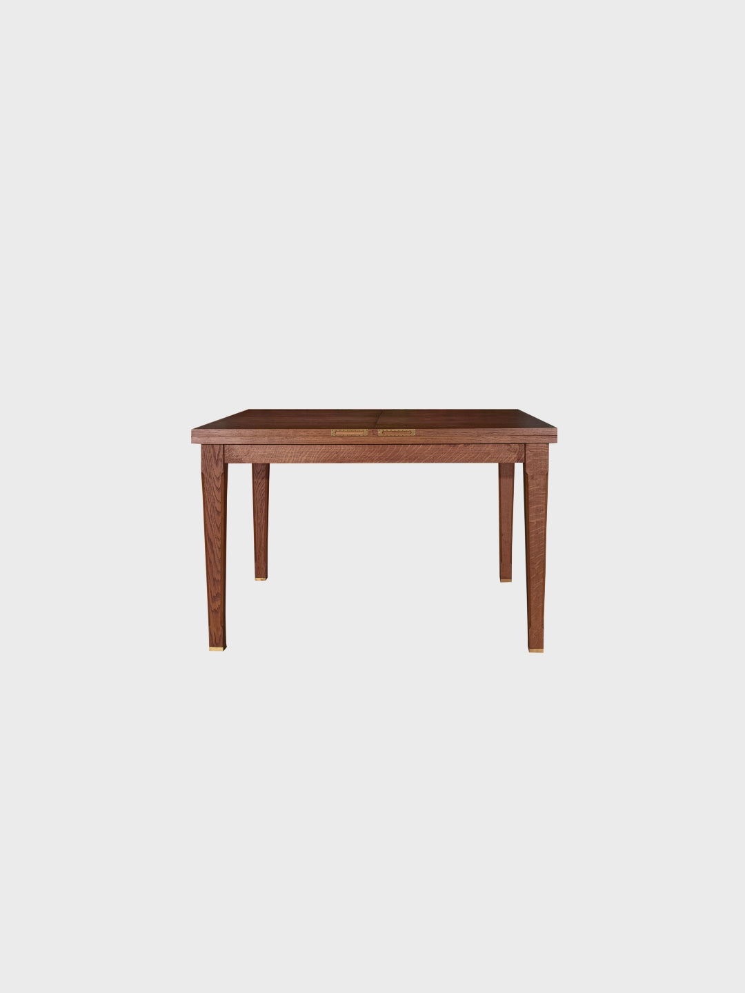 Our Terry Twofold Table is made in England with our master furniture maker. Using the best, solid quarter sawn French oak only, chosen for its stability and beauty. The strong, straight grain is less prone to warping and shrinking and even offers some resistance against spillages. Best of all - you get naturally occurring medullary rays appearing in wild, flamed patterns. Terry Twofold is finished with a wax oil which protects the wood and enhances the grain. Using solid wood ensures Terry will age like a fine wine as he eventually begins to mark over time. Unlacquered brass is used on detailing such as on the bespoke pull handles and capped feet.