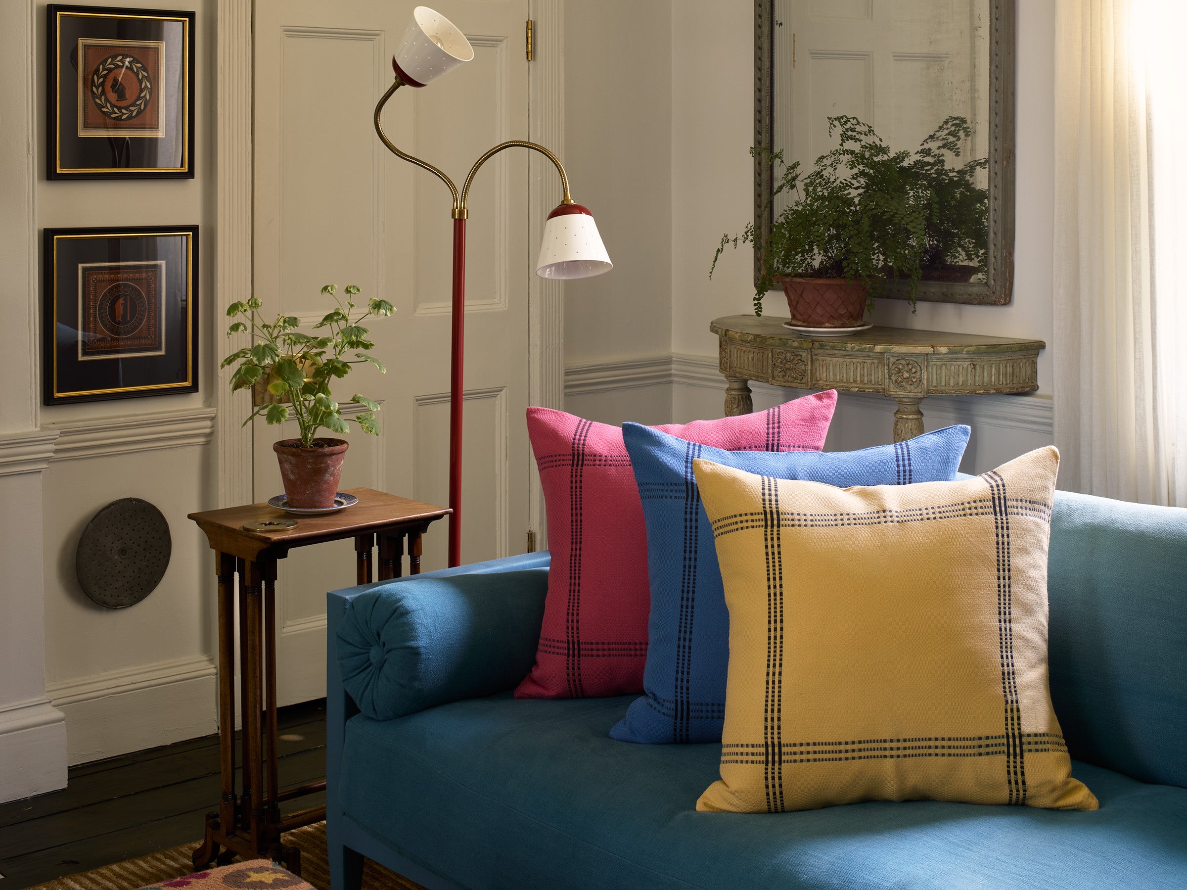 These Two-by-Two Cushion Covers are made with our Insjöns fabric, a celebration of Swedish weaving tradition. Woven on century old shuttle looms in a small town in Sweden, the intricate and iconic Daldräll pattern is created with a special blend of cotton and linen that produces a sturdy yet refined fabric that can be washed hundreds of times without losing its integrity - making them our first washable cushion covers - elegant and practical.