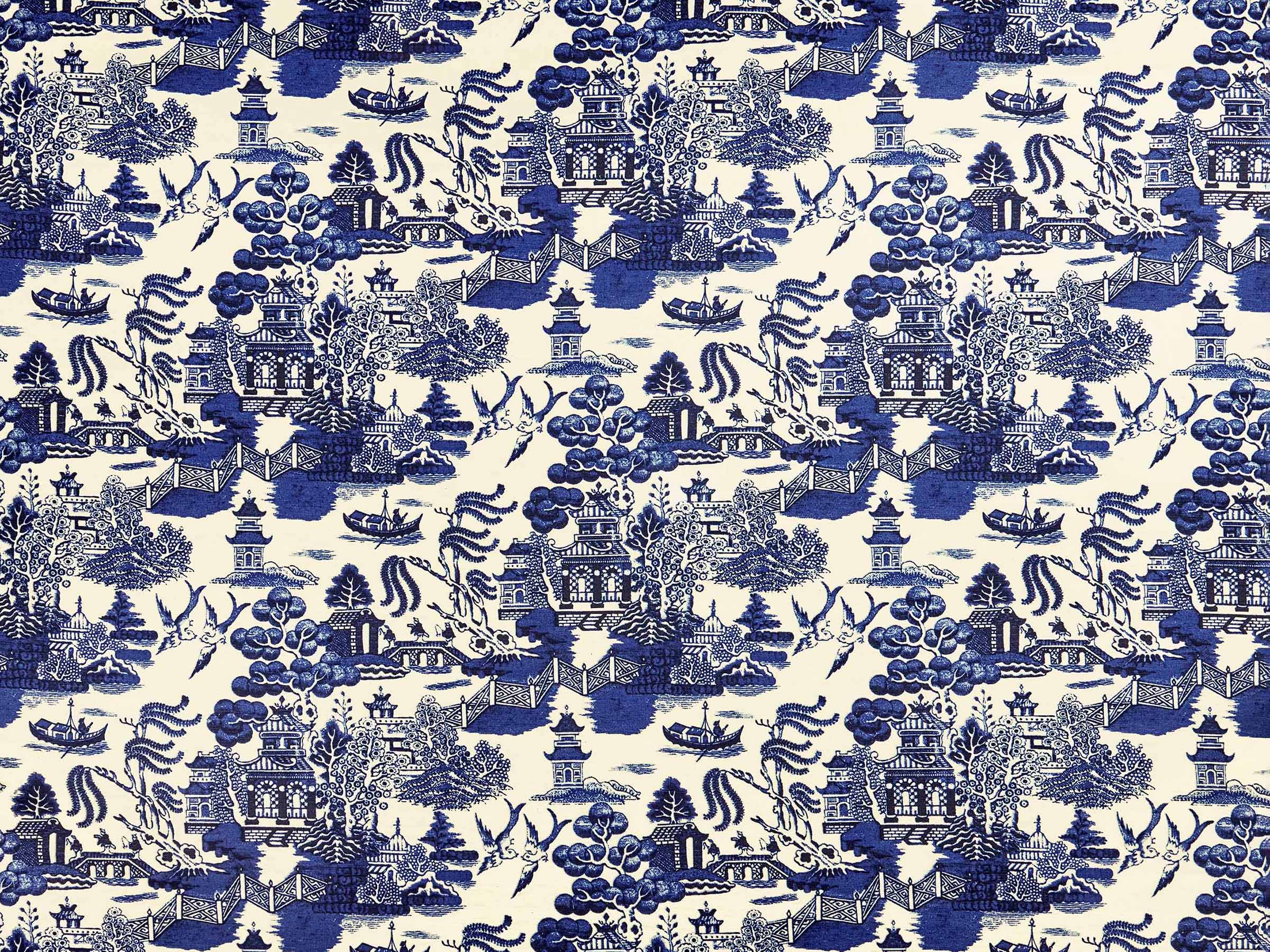Our oversized version of this classic 18th century ceramic pattern is screen printed on a cotton linen and then paperbacked so that it can be installed on walls just like a wallpaper. It feels more indulgent and rich than a pattern printed on paper but is easier to install than traditional fabric walling. Willow wallpaper looks wonderful on bedroom walls or in a snug and would also work well above paneling in a bigger living room with pictures on top. Why not go all in with matching curtains in Willow Ink?